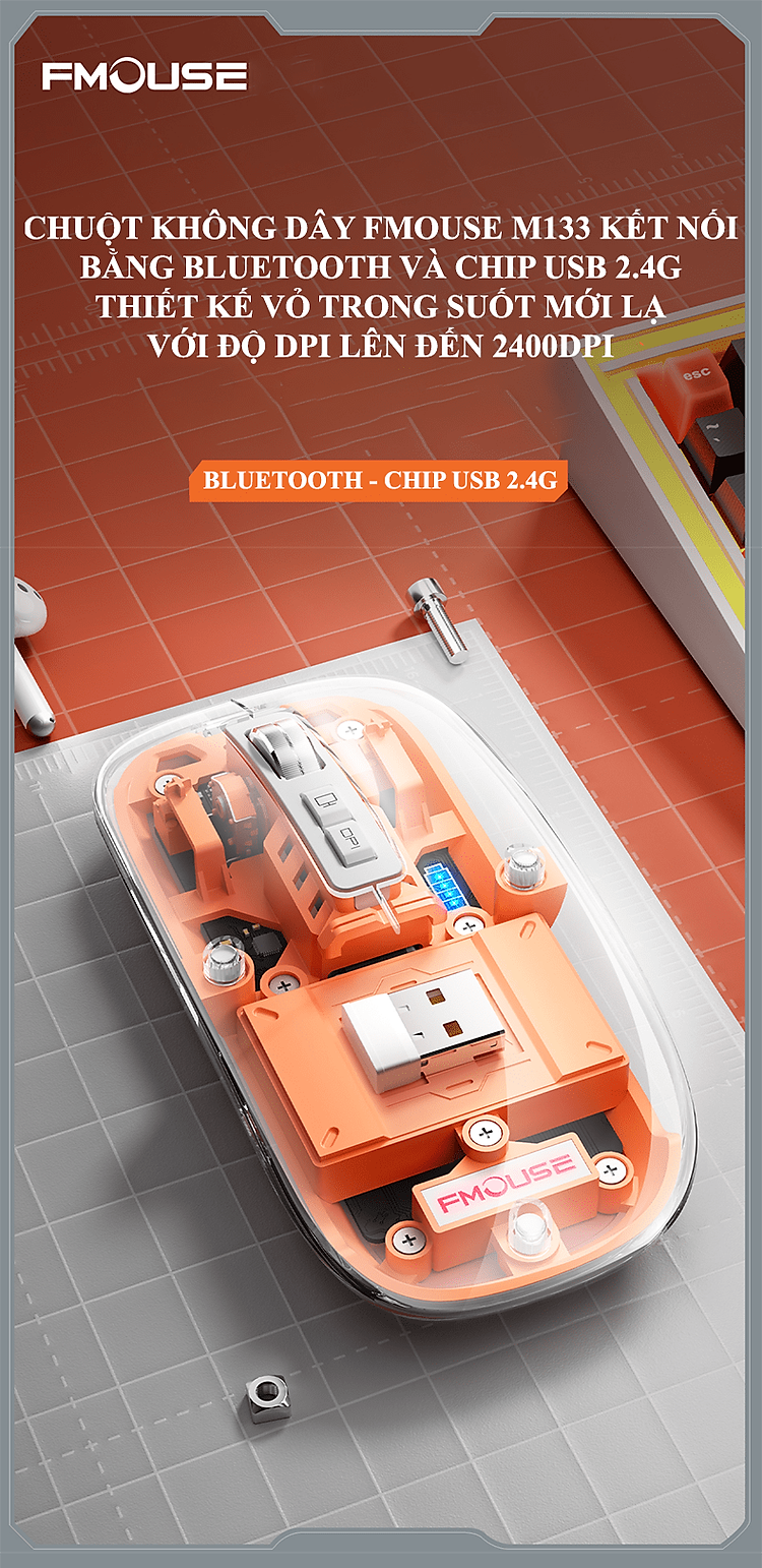 Chuột không dây với 2 chế độ kết nối Bluetooth/ chip USB 2.4G