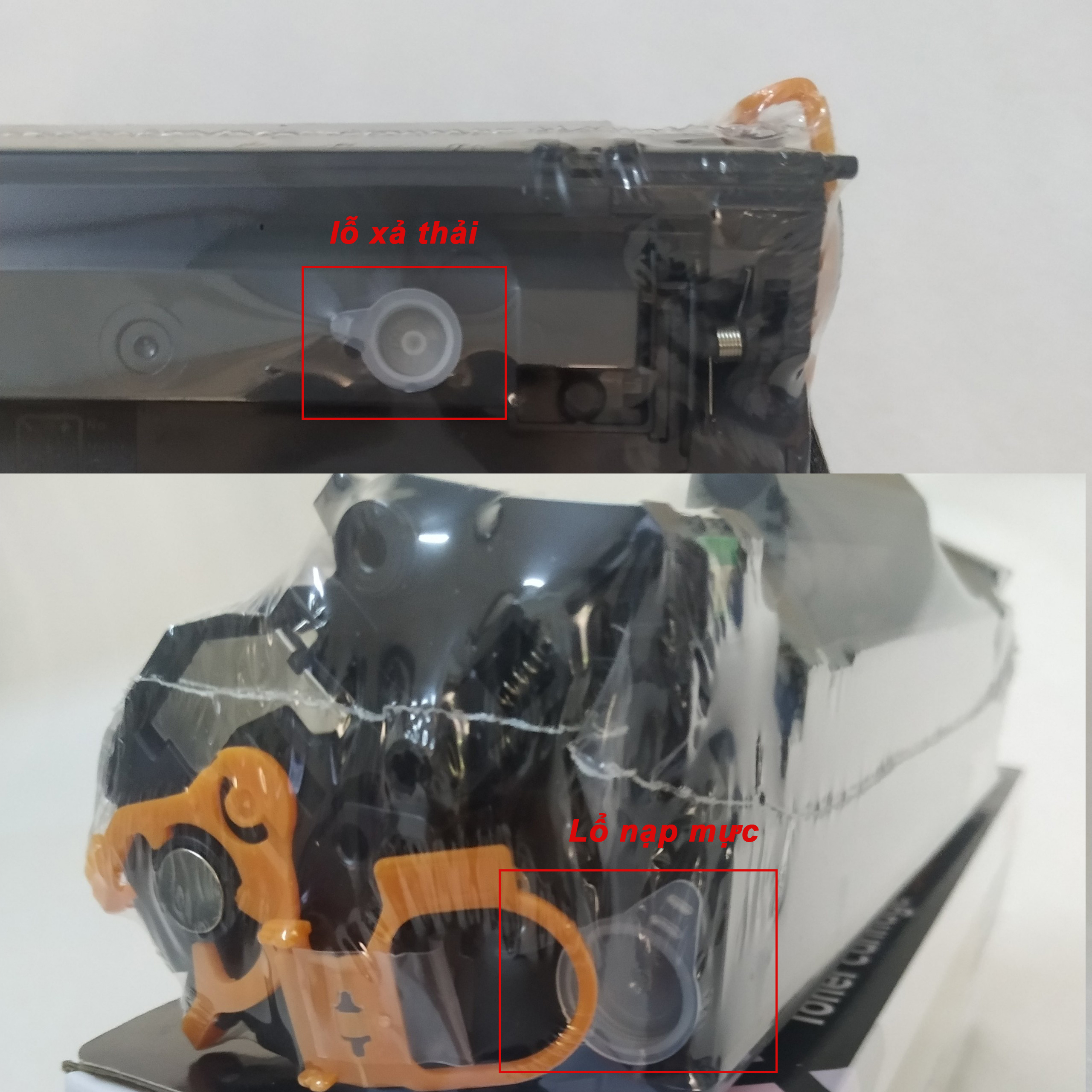 Là hộp mực được sản xuất có 2 lỗ đổ mực và xả thải, Khi dùng hết các bạn có thể dễ dàng nạp lại 1 2 lần trước khi bỏ và mua hộp mực khác.