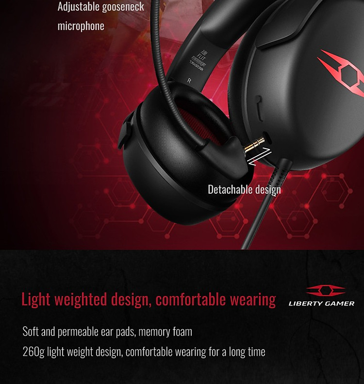 - Thiết kế công thái học, phần cài đầu từ chất liệu bọt biển mềm mại, không tạo áp lực khi đeo; người chơi tùy thuộc từng kiểu đầu khác nhau mà điều chỉnh tai nghe cho phù hợp, thích hợp cho mọi người chơi khác nhau.